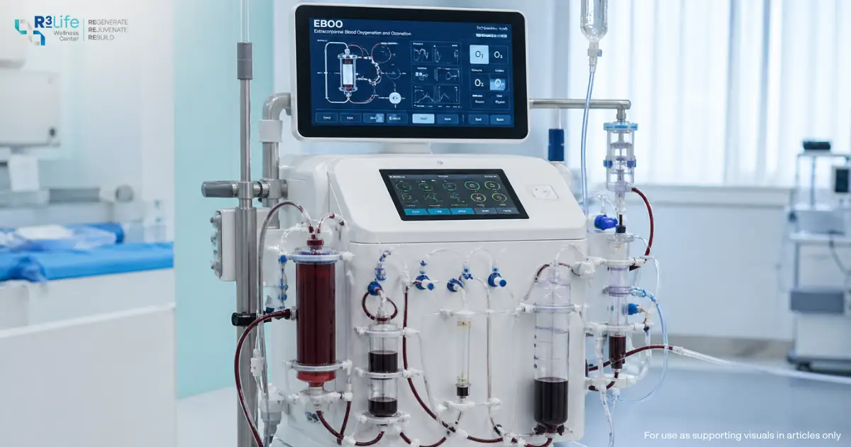 - EBOO → Circulates blood outside the body for oxygenation and ozonation with partial filtration