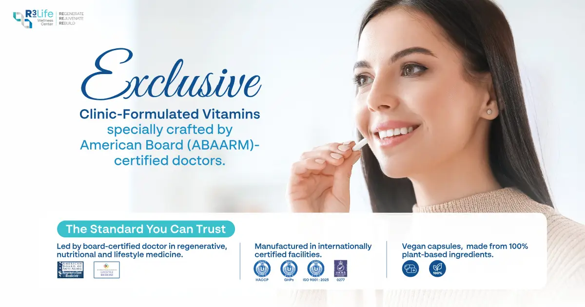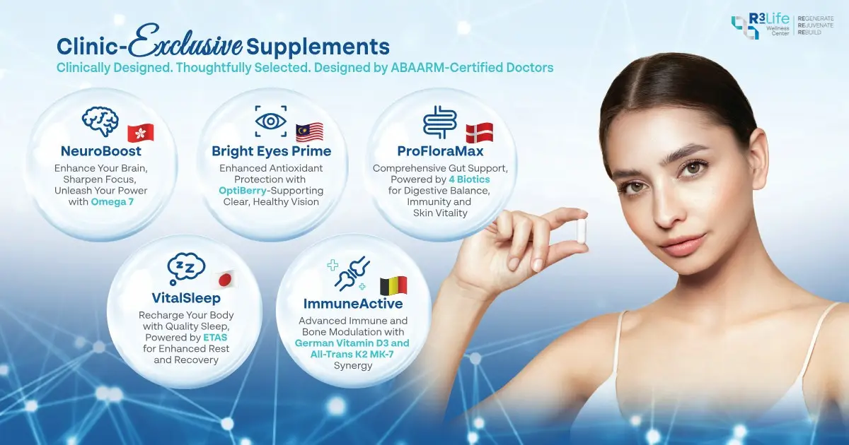 All clinic supplements are available exclusively at R3 Life Wellness Center with professional consultation.